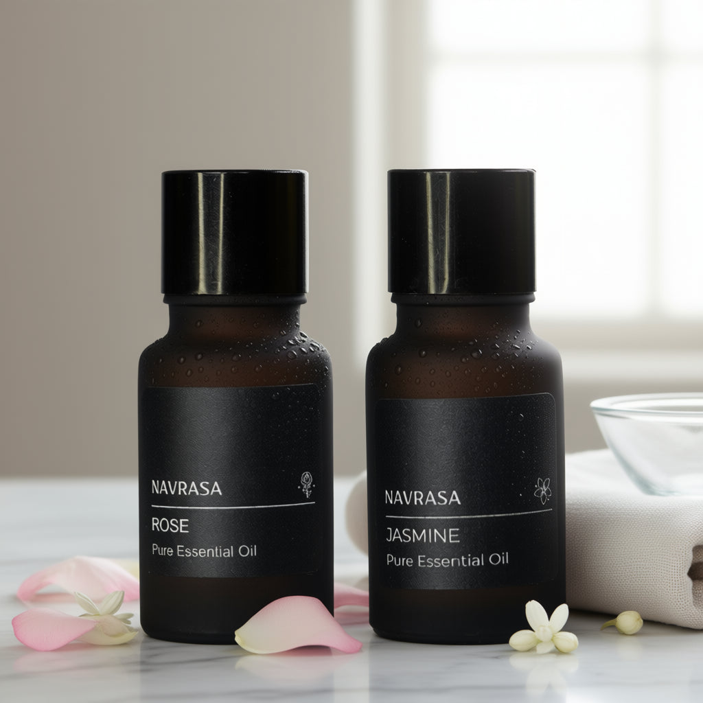 A two-oil floral pairing of rose and jasmine designed for warmth and intimacy.