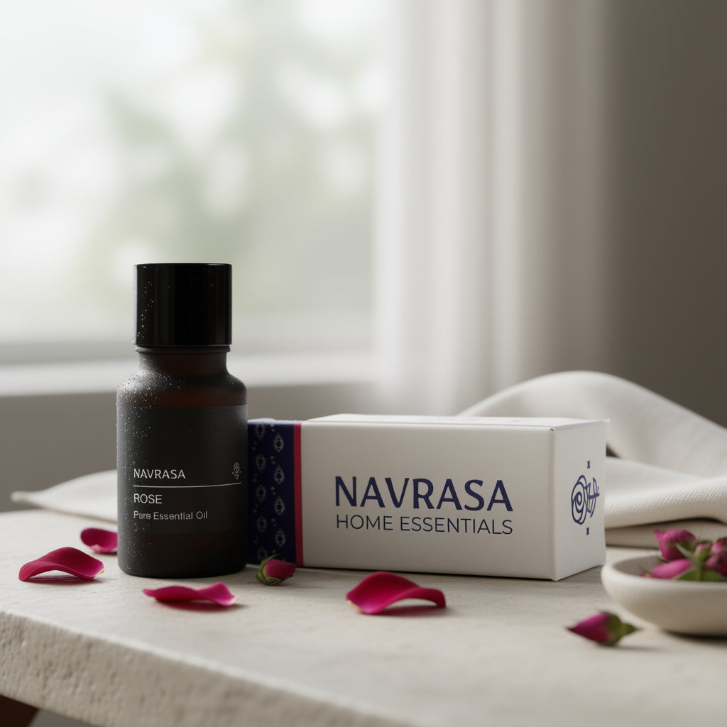 Rasa : Śṛngāra (Love) - romance, intimacy, depth. Wraps the room in soft floral richness.